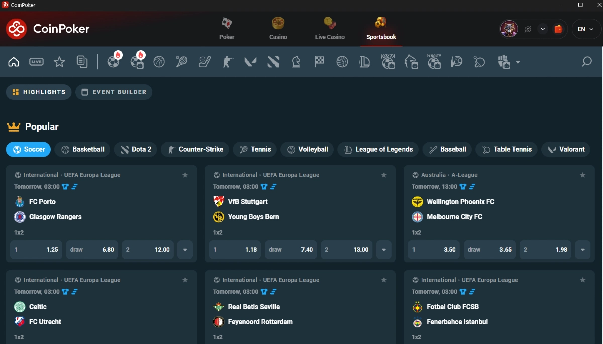 As an award-winning crypto gaming site, CoinPoker was asked whether Ethereum can do sports betting, and simply yes, it can. With your crypto, you can make wagers on your favorite games with our comprehensive sportsbook full of the world’s top leagues, teams, and events.