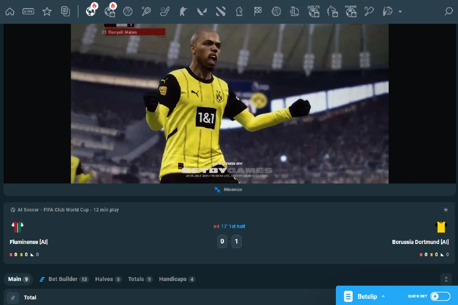 The Bet Builder option allows you to combine multiple picks from the same match and get a fair price on your unique betting slip. This option is especially fun for true soccer fans, as it allows them to watch the match and look out for multiple events within that match to make their Bet Builder a winner.
