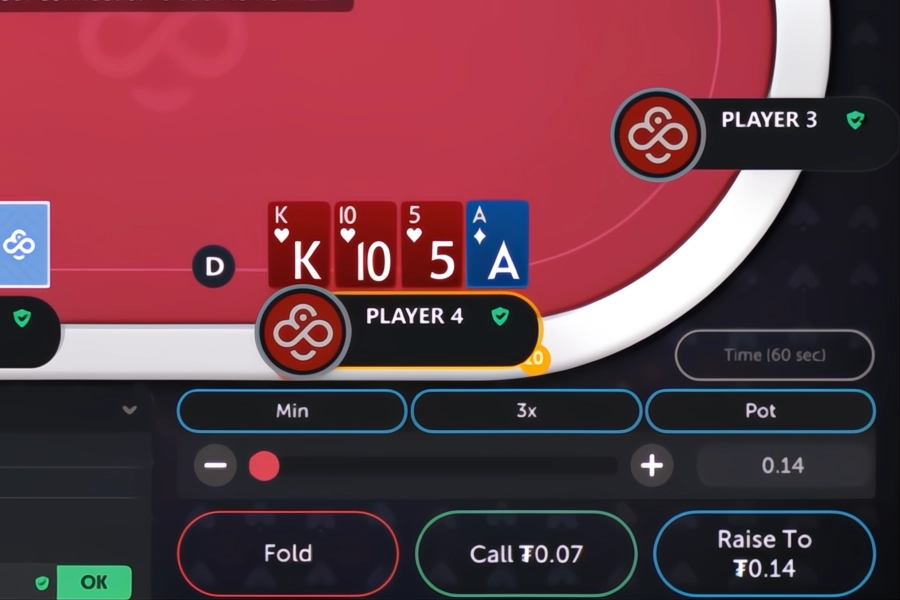 Image: The player has Kh Th 5h Ad and needs to choose an action