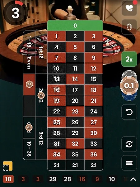 - Dozens/Columns: Covers 12 numbers (pays 2:1).