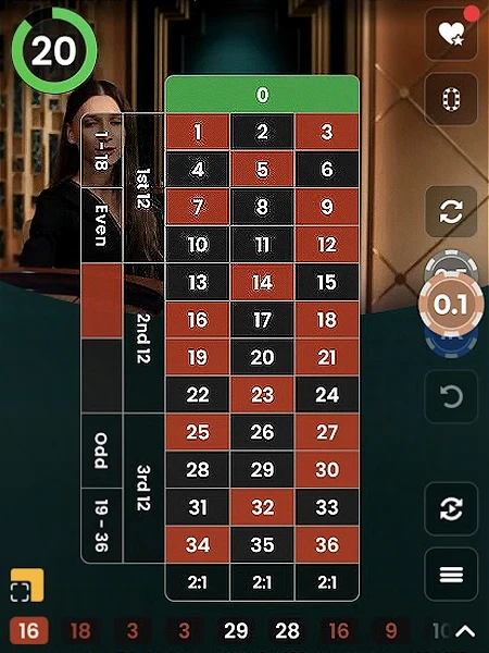 - Odd or Even: Choose whether the winning number is odd or even (pays 1:1).