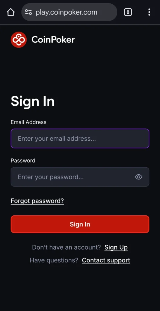 1. Log in to CoinPoker: Launch the CoinPoker app on a Windows PC or Mac, and sign in.