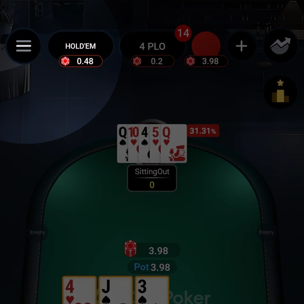 • Take control of the game with reduced variance: Poker is a game of probability and variance. Features like EV Cashout help secure your EV against such variance and swings.