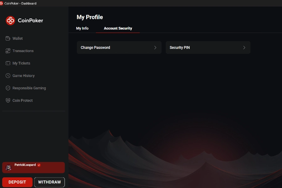 Other things, such as email addresses or voluntary account restrictions, must be changed by contacting CoinPoker directly. Please contact us via email ([email protected]) in these cases.