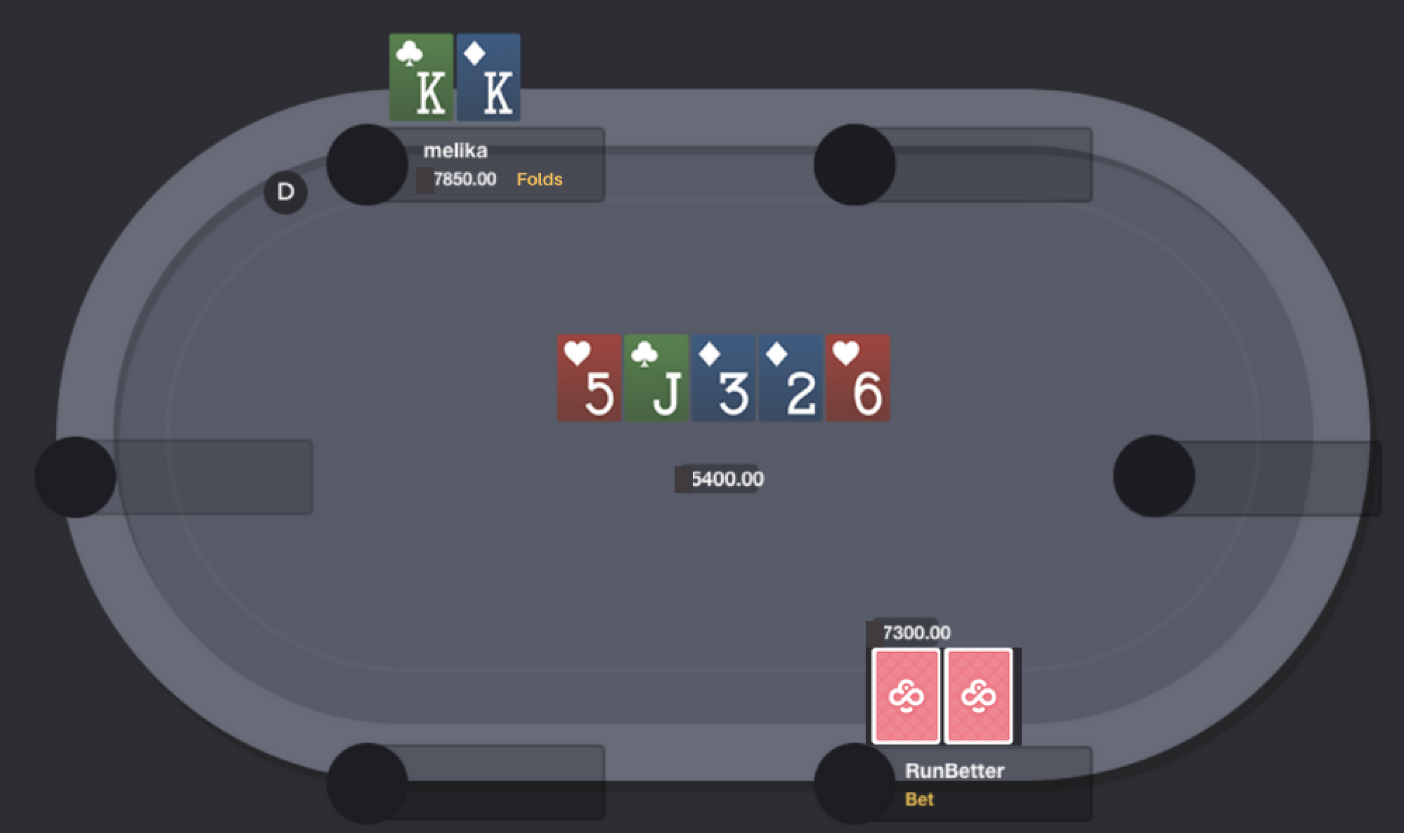 The river is a  and RunBetter shoves all-in with 7,300 into 5,400.