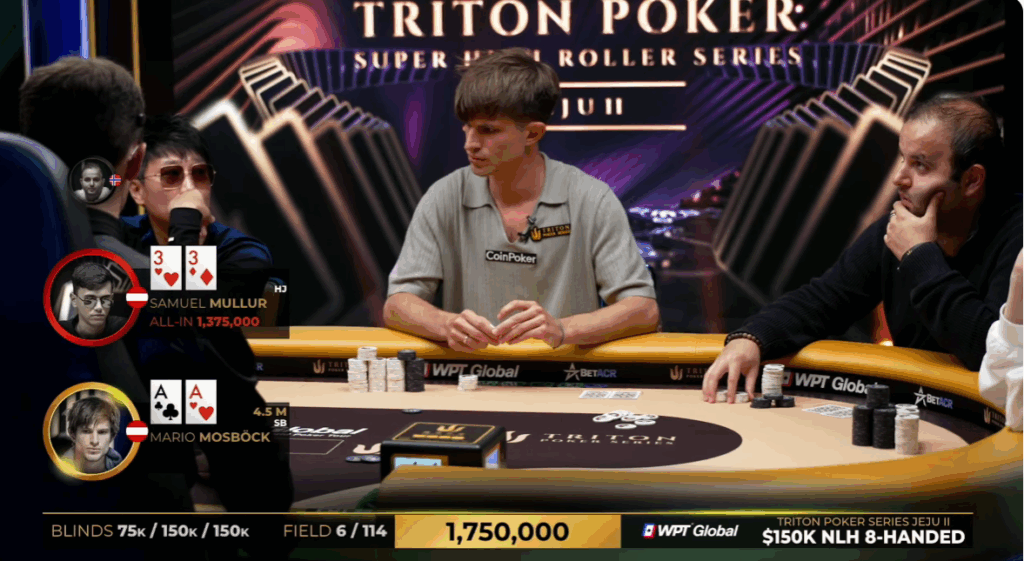 CoinPoker ambassador Mario Mosböck delivered another great performance at the 2025 Triton Poker Series Jeju, where he narrowly missed his fourth Triton title.