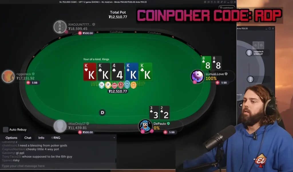 The first CGWC VIP Game kicked off this Sunday, featuring LLinusLLove, Barak “iWasOnly17” Wisbrod, Riggedeck, and CoinPoker Ambassador Ryan DePaulo as the VIP.