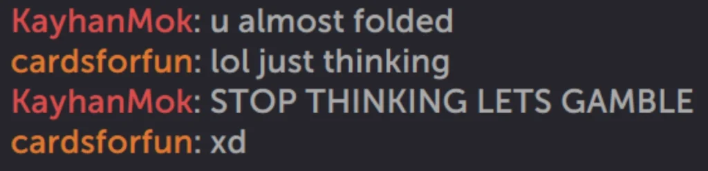 In the largest pot of the match, Kayhan cracked cardsforfun’s pocket aces in a massive $1,075,962 pot.