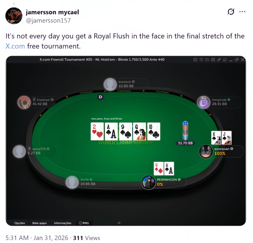 One player even managed to hit a royal flush near the end! Of course, this was worthy of a post on Twitter.