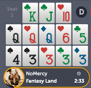 In this scenario, trips 3s on top will allow you to remain in Fantasyland just as the previous board placement. However, let’s see how many points you make here. Remember the tips that we learned in the very first part of these series of articles on OFC: