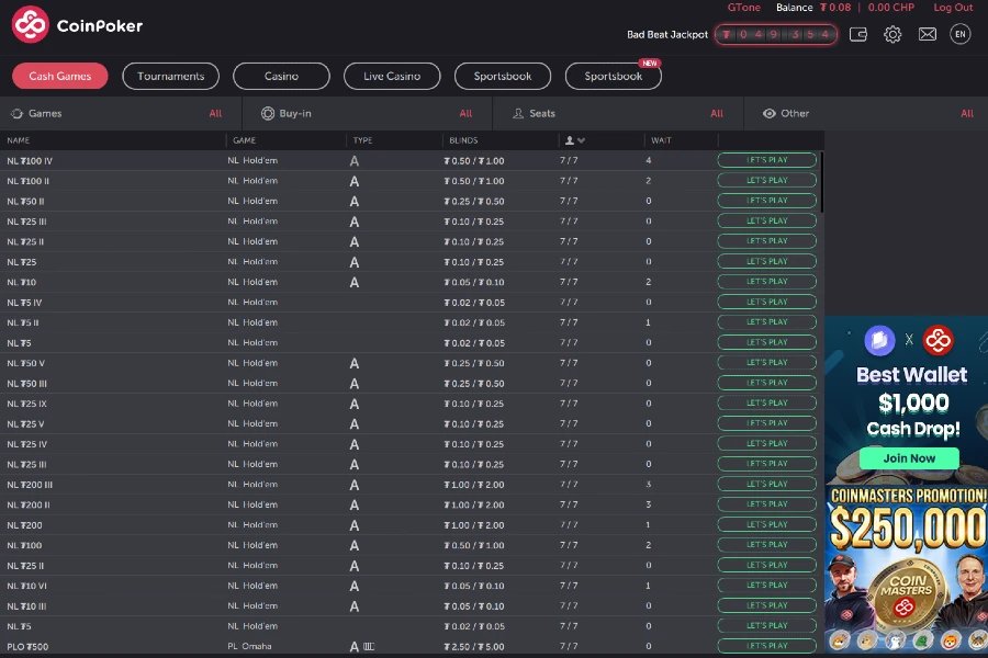 CoinPoker operates 24/7, so you’ll always find a game, but certain times offer more action and a wider selection of players.